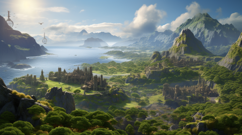 Illustrate the highland regions adjacent to the Mesopotamian plain where human civilization is believed to have originated. Content: Highland landscape, Mesopotamian plain. Medium: Digital art. Style: Historical and geographical accuracy. Lighting: Natural sunlight over the landscape. Colors: Realistic portrayal of the terrain. Composition: A detailed landscape showing the origin of civilization. --ar 16:9 --v 5.1 --style raw --s 750