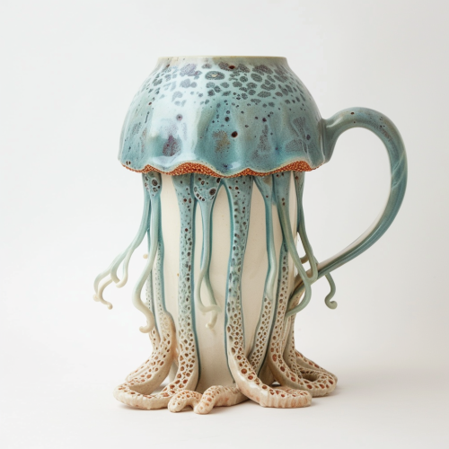 a ceramic mug in the shape of a jellyfish against a white background --v 6.0