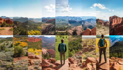 Compose a captivating collage of eight photos, each focusing on the lower half of a hiker in various terrains, showcasing a diverse range of hiking shoes. Explore the contrasts between different environments and footwear choices. Include scenes such as a lush forest trail, a rocky mountain ascent, a sandy desert trek, a snow-covered path, and more. Ensure each photo captures the unique texture of the terrain and the character of the hiking boots worn by the adventurer. Create a visual narrative that celebrates the versatility of hiking footwear and the diverse landscapes that outdoor enthusiasts navigate. Emphasize the details, from mud-stained treads to well-worn laces, showcasing the stories etched into each pair of boots as they tread through nature's wonders. --ar 7:4 --v 5.2