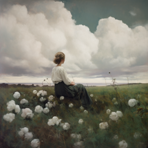 cotton candy meadows, oil painting from the 1910s, Andrew Wyeth style --v 5.0