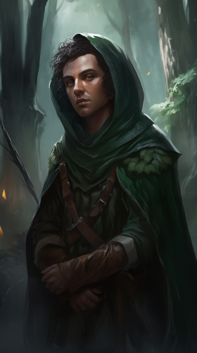 a dungeon and dragons style portrait of an Forest archer wearing a green cloak --ar 9:16 --v 5.0