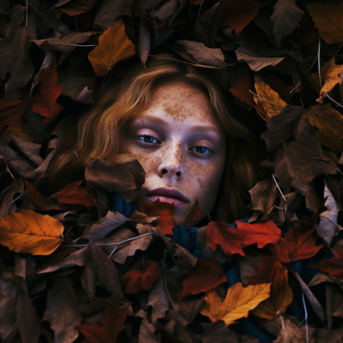 A single cannabis seedling, surrounded by fallen leaves, pushing upwards towards the light, defying the autumn rain and chilly winds. --v 5.0 --s 250