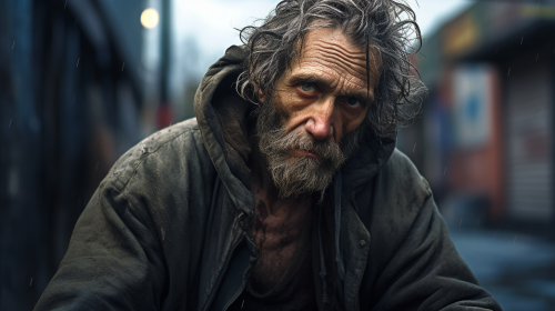 Leave the homeless man out in that cardboard cell --ar 16:9 --v 5.2