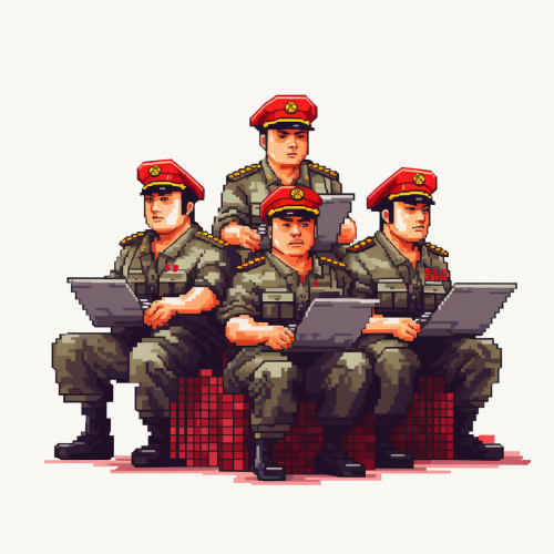 group of chinese mao keyboard warriors, pixel art, white background