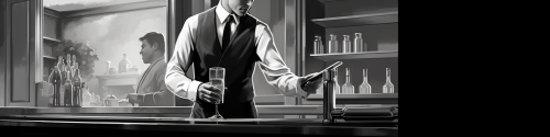 bartender pouring a drink for customer,greyscale illustration --ar 4:1 --v 5.2