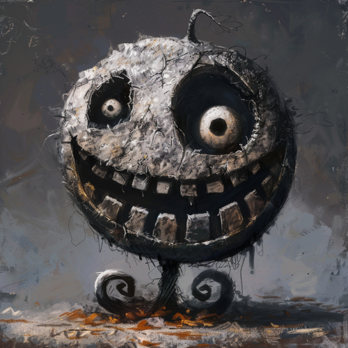 Create an image drawn in a horror book style, in the scene, (Stage of an abandoned school, dark man in a hooded sweater, holding a large knife, just showing his sinister smile). The atmosphere must be full of suspense, and a dark color palette. The background must be faded to highlight the central figure, the image must be drawn like an illustration from a horror book. Ensure a mysterious aura that captures the essence of fear, encouraging clicks on the thumbnail. The aspect ratio of the image must be 16:9.