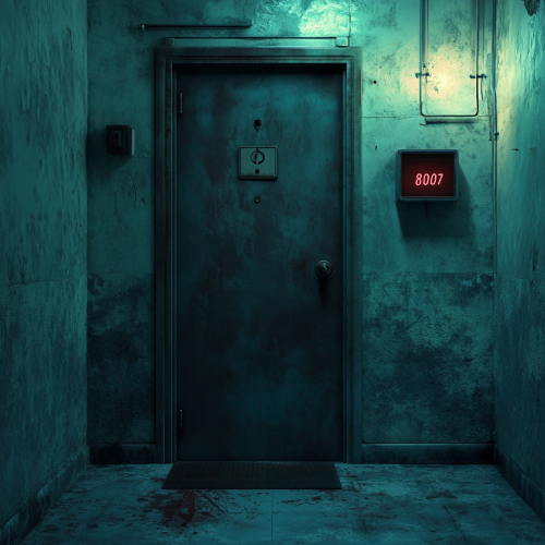closed up door's room no.404 text-to-image horror hotel by night in classic horor movie 70's style , ghost eye saw fromphotocell far view, --ar 9:16 --v 6.1