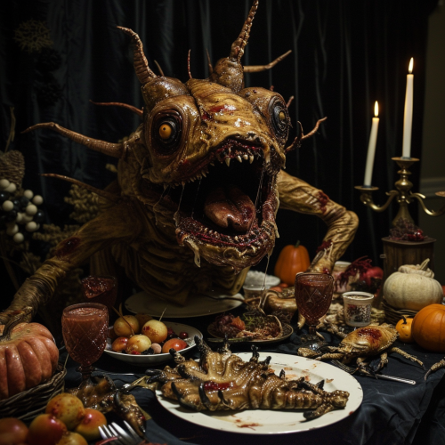 A celestial Horror IllustratorCorel Painter image horrific Sci-fi films, horror style, and a Organic view --v 6.0 --c 15 --ar 5:7 --s 750