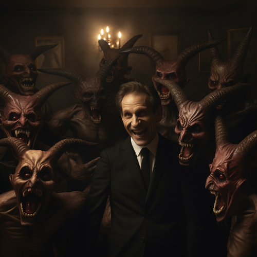 Photorealistic cinematic still from horror film called "Goofy vs. Satan Cult" ::5 Directed by Ari aster ::3