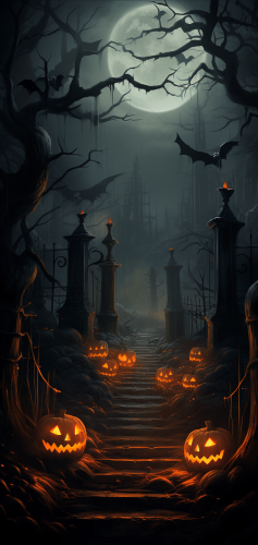 linoart logo of halloween scene, large pumpkin in the center, spooky trees, solid white background --s 250 --v 5.2