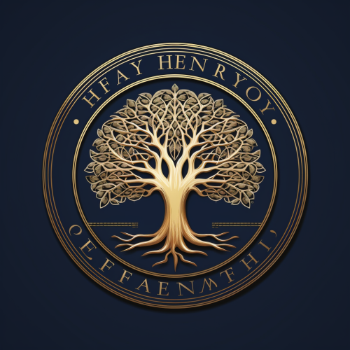 a logo for Henry Family Publishing that is in a craftsman style that includes the tree of life