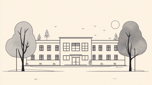 Flat 2D school drawing in black ink cartoon line outline in flat geometric style. Ultra minimalist design using basic geometric shapes. Maintain high contrast. --ar 16:9 --v 6.1