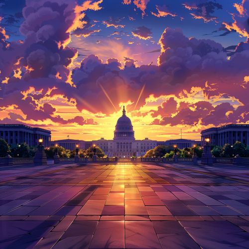 a capital building with a sunset in the background and lots of empty space