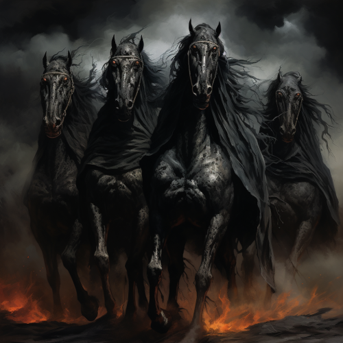 the four horsemen of the apocalypse, nightmare core, intense gazes, high quality, photorealistic