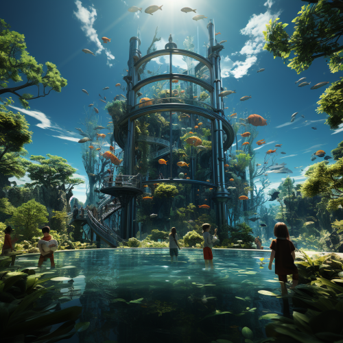 a child park under water , swimming children, photorealistic,ultra detailed, --stylize 700