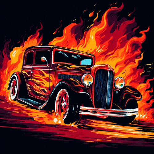 Rat Fink driving an old school hot rod, in the style of grim dark vector art, with 80s neon colors, high contrast, high speed, dynamic pose, in the style of vintage comic artwork , high detail, high quality - - v6.1