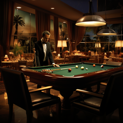 dinner at hotel, at sid of pool, with 80th style, photograpic realistic.