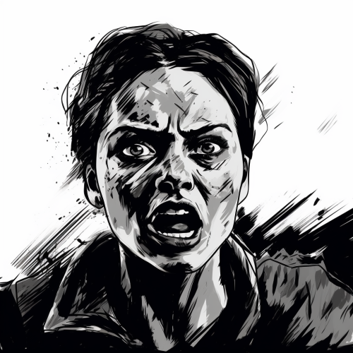 Character RPG. Enraged, Possessed Vermont woman. portrait :: black and white, in the style frank miller ,comic book illustration :: --ar 1:1 --v 5.0