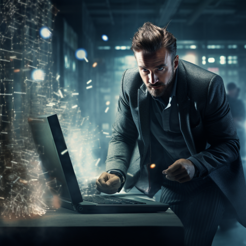 a cyber security person calmly bites intp a burger and ignors her work - illustrating the risks of lax cyber security --ar 16:9 --v 5.2