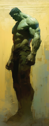**The hulk, painting by Sergey Kolesov,full body, light Rembrandt style,brush detail and textures --ar 9:23 --s 750 --v 5.1