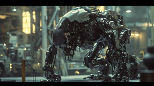 MECHANICAL STRUCTURE HOLDING A HUMAN BODY, JUST LIKE A CAR ASSEMBLY ROBOT,, environmnet scene, natural lighting, concept art environment design, cinematic, ARRIFLEX 35 BL Camera, canon k35 prime lenses, --ar 16:9 --v 6.0
