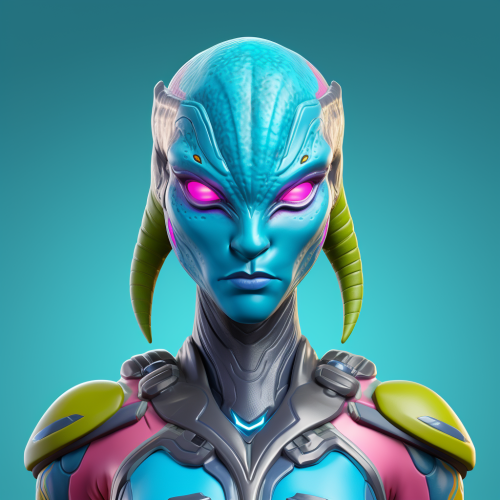 alien woman fortnite character ready for battle with vibrant colors. Focus on the face