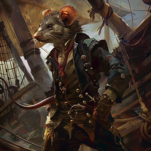 a female human rat who is at the head of a battle arena, she is a former pirate, Mafia office in a ship, fantasy, illustration, digital art