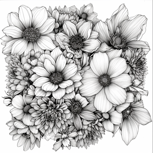 a hand drawn thick lined image a giant bouquet of flowers hyper-detailed, 4k --style raw --stylize 50 --v 6.0