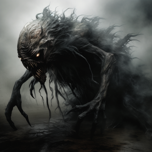 Demons over an horrific afro maerican neighborhood, gloomy lights, spooky atmosphere, terrifying psychedelic dmt hallucinations, lucid nightmare visions, Hell unleashed over Queensbridge, --v 5.2