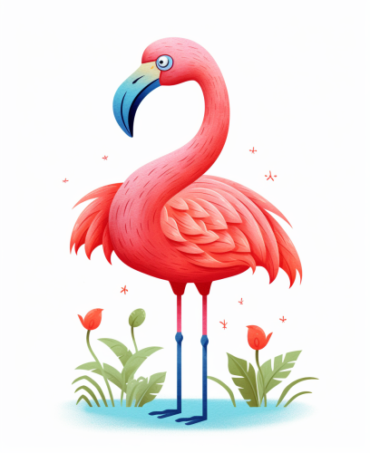 kids illustration, cute flamingo, cartoon style, thick lines, low detail, vivid color --ar 9:11