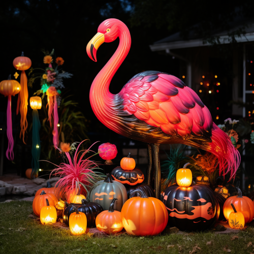 A cute chibi flamingo dressed as a pastry chef, complete with a white chef’s hat and a pink apron. The flamingo stands gracefully on one leg in a vibrant bakery kitchen, skillfully using its beak to decorate a cake with intricate frosting designs. The background is filled with colorful pastries, cakes, and baking tools, and the kitchen is adorned with tropical decorations, emphasizing the flamingo’s elegant and playful charm as a pastry chef. 4K, HDR, highly detailed