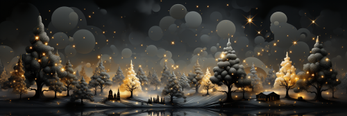 Christmas tree. Digital painting - southern gothic - Plein air landscape. A lush evergreen tree, its boughs adorned with an assortment of radiant lights, shimmering tinsel, and an array of ornaments. At its pinnacle sits a dazzling star, casting a warm and festive glow. Black and white with vibrant color splash. White Christmas lights. . Stylish. High - end. Important. Mysterious. Shot with a Pentax. K - 3 III Monochrome. Extreme low angle shot. Shooting straight up. --ar 3:1 --q 0.5 --s 750