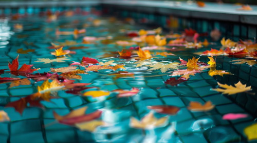 Leave the autumn leaves in their swimming pool --ar 16:9 --v 6.0
