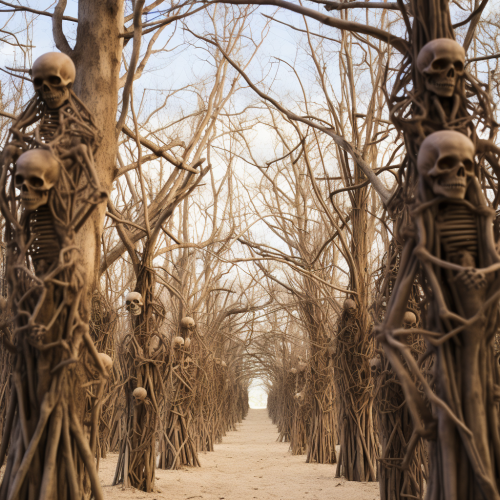 a forest covered in trees with trunks made from human bones and leaves and branches from the cardiovascular system