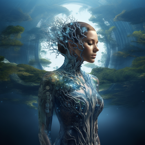 Create a hyper-realistic 3D image in 8K resolution that seamlessly merges human anatomy with organic plant structures and roots. The skin should intertwine with roots, veins resembling plant tendrils, and limbs partially transforming into tree branches and leaves. The fusion should be smooth, highlighting the natural integration between the human body and the plant life. Use detailed textures for the bark, leaves, and skin, with dynamic lighting to emphasize depth and contrast in the organic growth.Create a hyper-realistic 3D image in 8K resolution that seamlessly merges human anatomy with organic plant structures and roots. The skin should intertwine with roots, veins resembling plant tendrils, and limbs partially transforming into tree branches and leaves. The fusion should be smooth, highlighting the natural integration between the human body and the plant life. Use detailed textures for the bark, leaves, and skin, with dynamic lighting to emphasize depth and contrast in the organic growth.