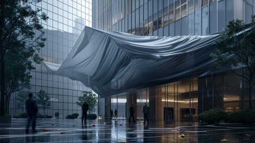 Business, meeting with AI elements, Light image, photorealism, 1 hyper realistic, award winning architecture photography, massive tarp --v 6.0 --ar 16:9