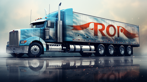 illustration of the word "CIRO" written truck trailer, american truck, commercial photography, hyper realistic, --ar 16:9