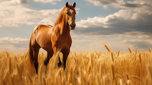 a horse in a wheat field, hyper-realistic, commercial photography, nikon z7, --ar 16:9