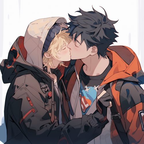 chibi boys, boy kissing his cheek, Emoji sheet, hoodies, different poses and expression --niji 5