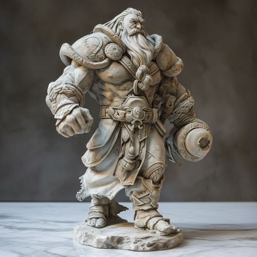 a marble statue of the Hearthstone character Sylvana, golden and red applications --v 6.0