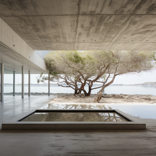inside of concrete steel campo baeza platform, surrounded by mangrove and sea