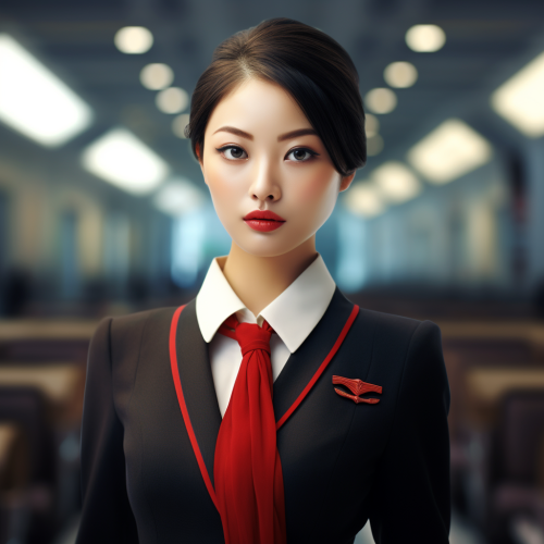 South Korea as beautiful stewardess, photography, top model, hyperrealistic, detailed, 16k, --v 5.2