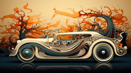 Fractal abstract car design in the style of Salvador Dali, surrealism, Warm color Palette --ar 16:9 --s 250