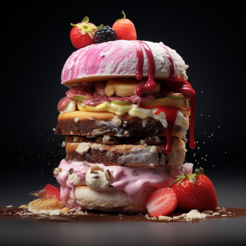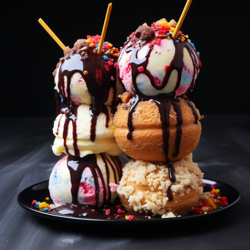 Develop an engaging leaflet design for waffle-style ice cream products, featuring a central visual of the crispy bread enveloping the ice cream, surrounded by vibrant images of various flavors and toppings, complemented by concise and playful text that highlights the unique selling points, Photography, DSLR with a 50mm lens, --ar 16:9 --s 250 --v 6.0