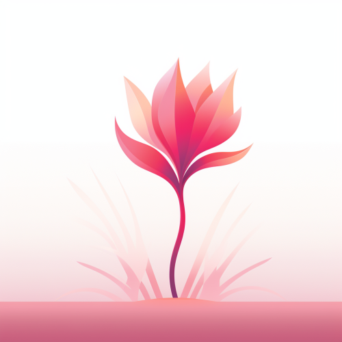 A budding flower, on the cusp of blooming, with subtle rays of light highlighting its potential. This symbolizes the 'emerging strength', indicating the promise and unfolding nature of this particular trait. Illustration Type: Flat, Usage Scenario: UI, Style: Minimalism, Background: Gradient of a hopeful dawn, Color Tone: Promise pinks and growth greens.