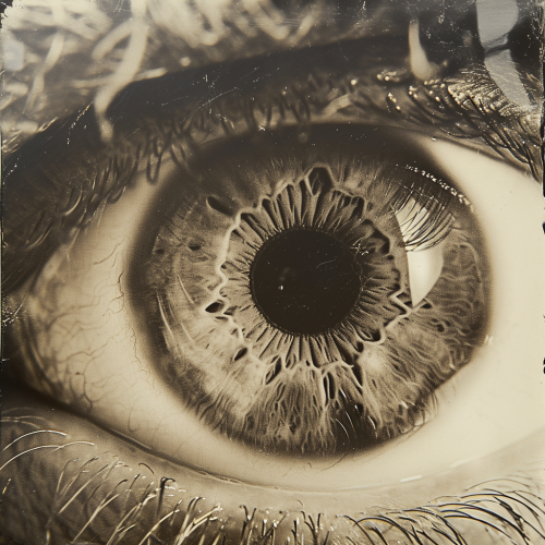 eyeball, bird eyeball, bionic eye, one single eye, robot eye, white background, black and white