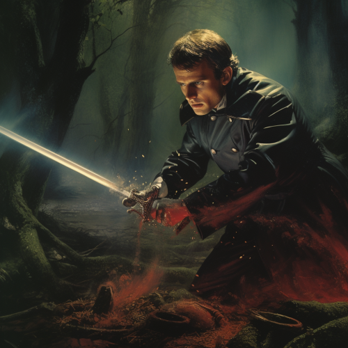 a Blonde young Man Fighting in a medieval tournament , anime art, anime, art, stunning, creative, Howls moving castle, Rain, Moody, House of the Dragon