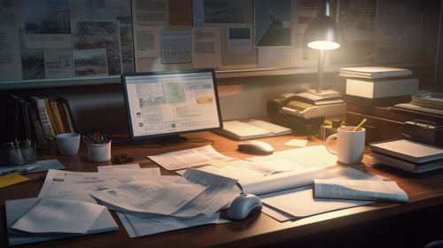 Illustration of contract termination, a formal document partially folded on a sleek desk, pen positioned nearby, some crumpled papers in the background indicating hesitation, bright natural lighting, modern and minimal office setup, emphasizing a sense of sudden change. Photorealistic, highly detailed, 8K resolution --ar 3:2 --v 6.1 --style raw