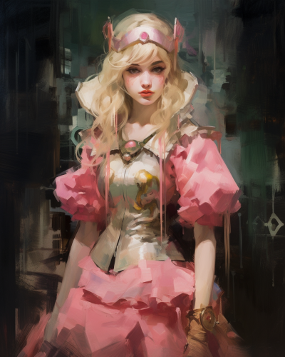 princess peach lounging in luxury castle piercing eyes --chaos 10 --weird 1000 --style raw