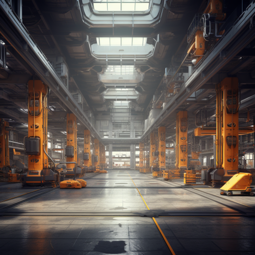 Image of warehouse with robots and AI systems.
